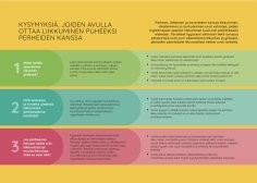 Oppaassa on tutkittua tietoa, toimintamalleja sekä vinkkejä perheiden fyysisesti aktiivisemman arjen ja yhteisen liikkumisen mahdollistamiseksi. Olitpa perheiden liikkumisen edistäjä esimerkiksi urheiluseurassa, varhaiskasvatuksessa tai kunnan eri toimialoilla tai kohtaatpa perheitä laajemminkin kunta-, hyvinvointialue- tai järjestötyössä, toivomme oppaan lisäävän tietoa perheiden liikkumisen mahdollisuuksien lisäämisestä, vahvistavan nykyistä toimintaa ja tarjoavan välineitä kehittämistyöhön.